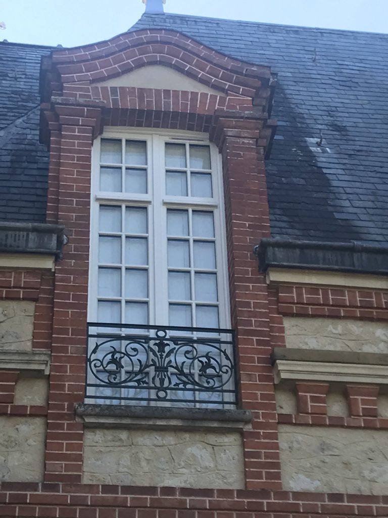 Fenêtre croisée 2 vantaux gueule de loup avec fausse imposte en partie haute, ouverture totale.